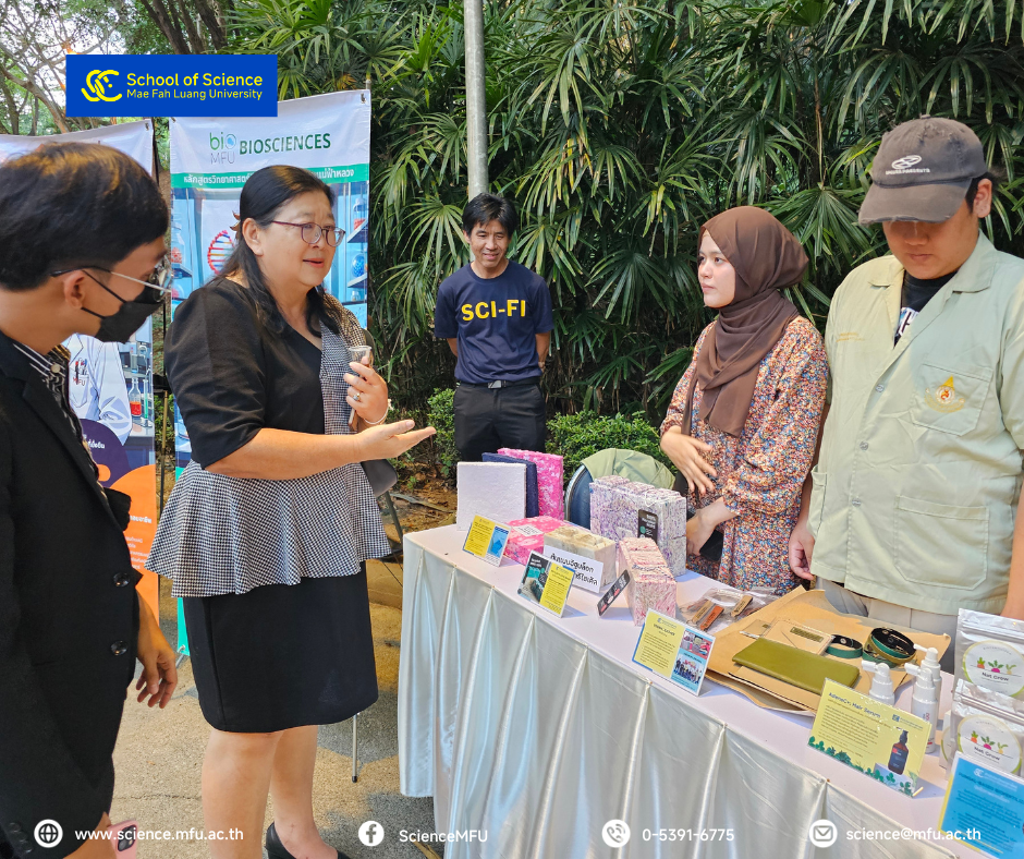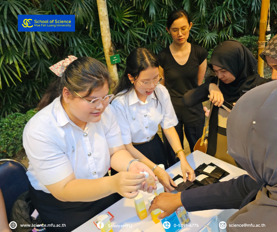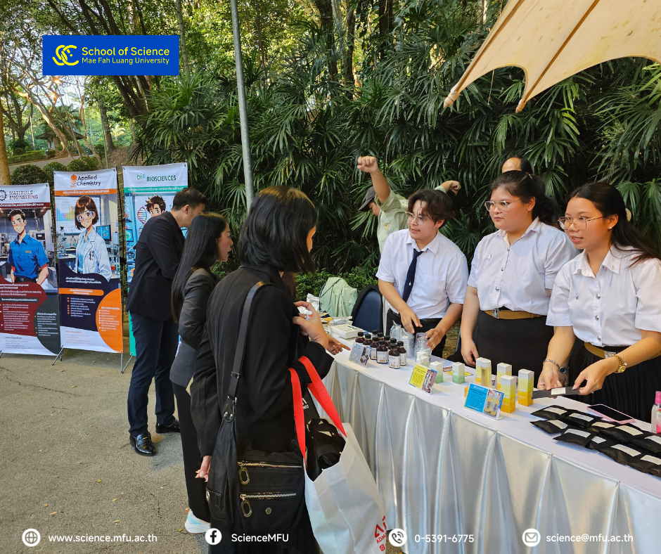 เมื่อวันที่ 30 ตุลาคม 2568 สำนักวิชาวิทยาศาสตร์ มหาวิทยาลัยแม่ฟ้าหลวง (มฟล.) นำเสนอผลงานและนวัตกรรมสุดสร้างสรรค์จากนักศึกษาและคณาจารย์ทุกหลักสูตร ใน “กาดหมั้ว มฟล.” ภายในงานสัมมนาครูแนะแนว ครั้งที่ 19 ณ ลานวนาสวรรค์ มหาวิทยาลัยแม่ฟ้าหลวง